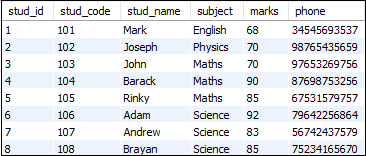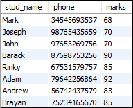 mysql> SELECT Student_details.stud_name, Student_details.phone, Student_details.marks