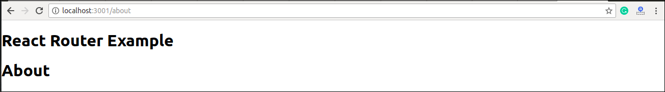 添加链接后,您可以看到路线已呈现在屏幕上。现在,如果单击关于,您将看到URL正在更改并且呈现了About组件。