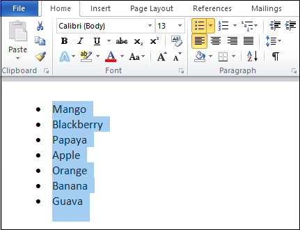 步骤1 : 打开Word文档并创建或选择要按字母顺序排列的数据列表。