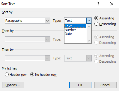 注意: 使用以下方法,可以在Word 2007、2010、2013、2016、2019和Office 365中按字母顺序排列数据。