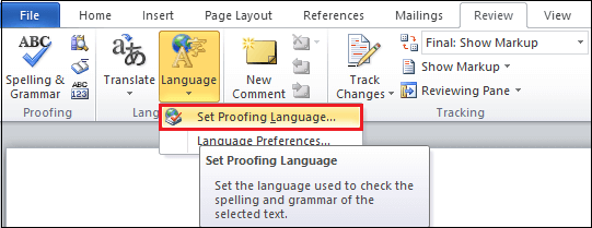 注意: 在Microsoft Word中,如果您更改语言,则它将更改所有特定于语言的功能,例如语法检查,字典和拼写。