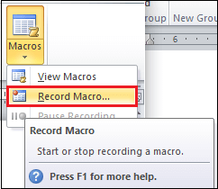 要将同一宏用于其他文档,请从 Store macro (存储宏)下拉菜单中单击所有文档(Normal.dotm)选项。